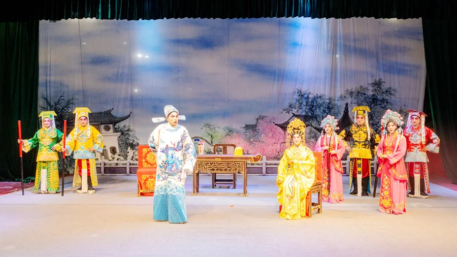 當(dāng)?shù)厥妨巷@示,在清朝末期,粵曲在園洲靠東江一帶盛行,逐漸發(fā)展成排大戲、搭戲棚,粵曲演戲形式多樣。新中國成立初期,逢年過節(jié)都有粵曲表演,看大戲成為老一輩園洲人最重要的娛樂。