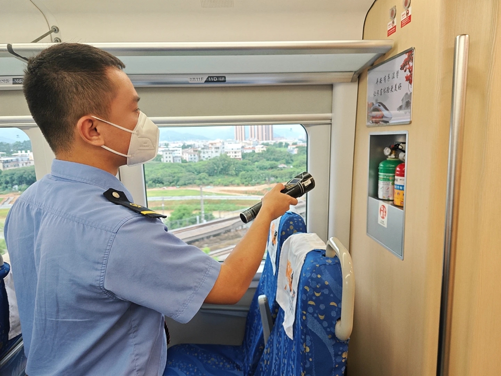 丈夫劉明森是廣州動車段惠州動車所的一名動車組隨車機械師。在動車組上值乘需要隨時檢查列車運行狀態(tài),發(fā)現問題及時解決。工作中,劉明森不放過任何一個細節(jié),為城際動車平穩(wěn)運行提供默默奉獻。“每天在車上來回巡視檢查超2萬步,有時還幫旅客撿到遺失物品,用自己的努力換來旅客放心、滿意的乘車體驗,我覺得這非常值!眲⒚魃f。