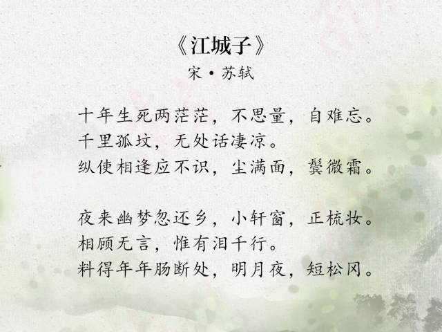 1065年,王弗病逝,年僅二十六歲。十年后,回首往事,蘇軾感慨萬千,寫下這首詞悼念亡妻。