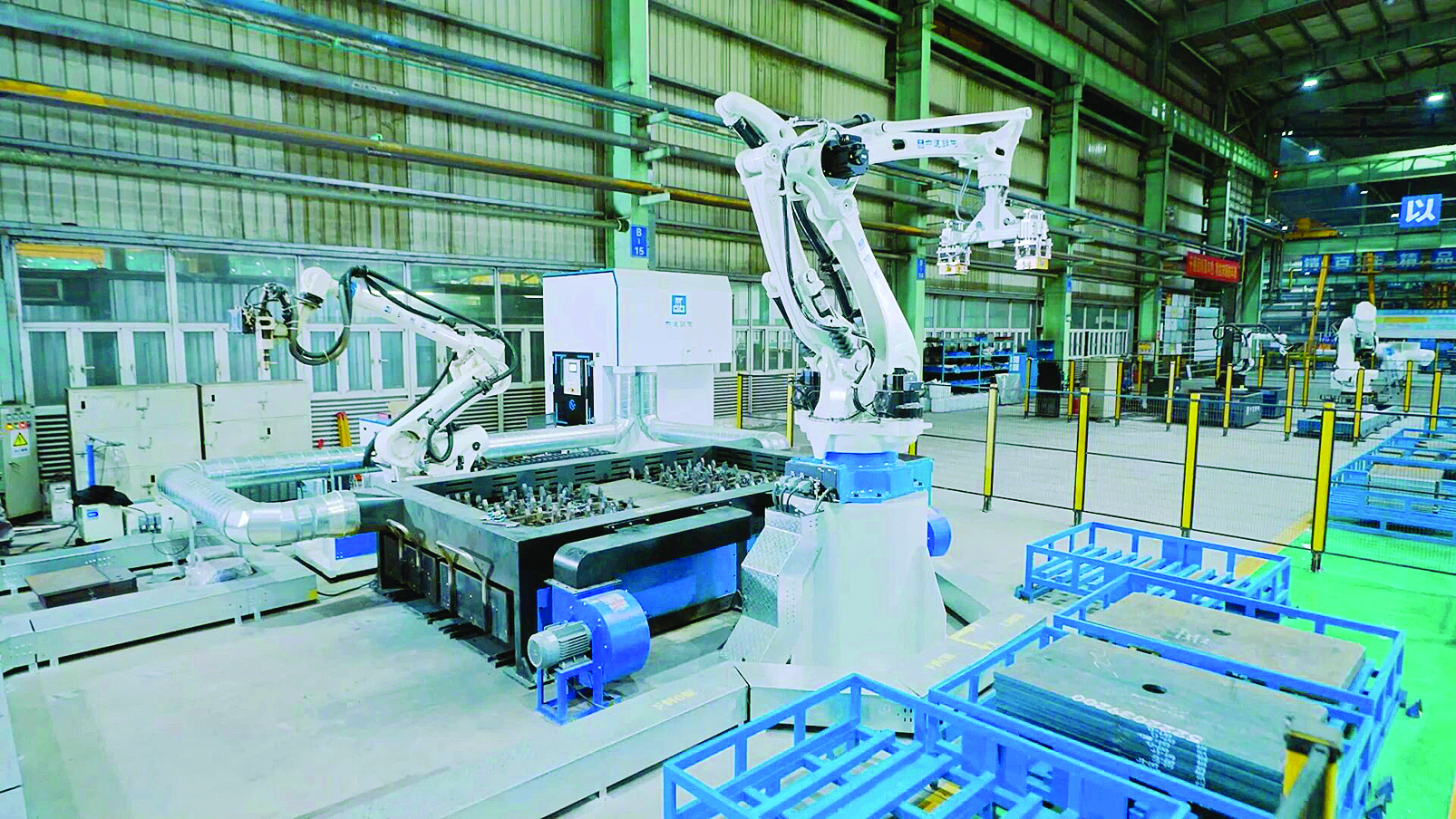 走進中建鋼構廣東有限公司生產(chǎn)基地,60余臺智能化機器人集群正高速運轉,智能坡口切割、懸臂式焊接等工序一氣呵成,火花四濺中,鋼板被精準拼接成各類鋼構件。今年以來,該基地新增25臺工業(yè)機器人,輕鋼產(chǎn)線自動化率顯著提升,大直徑水利管道產(chǎn)線完成高端化改造,數(shù)智化轉型不僅降低了運營成本,更成為企業(yè)核心競爭力的重要支撐。