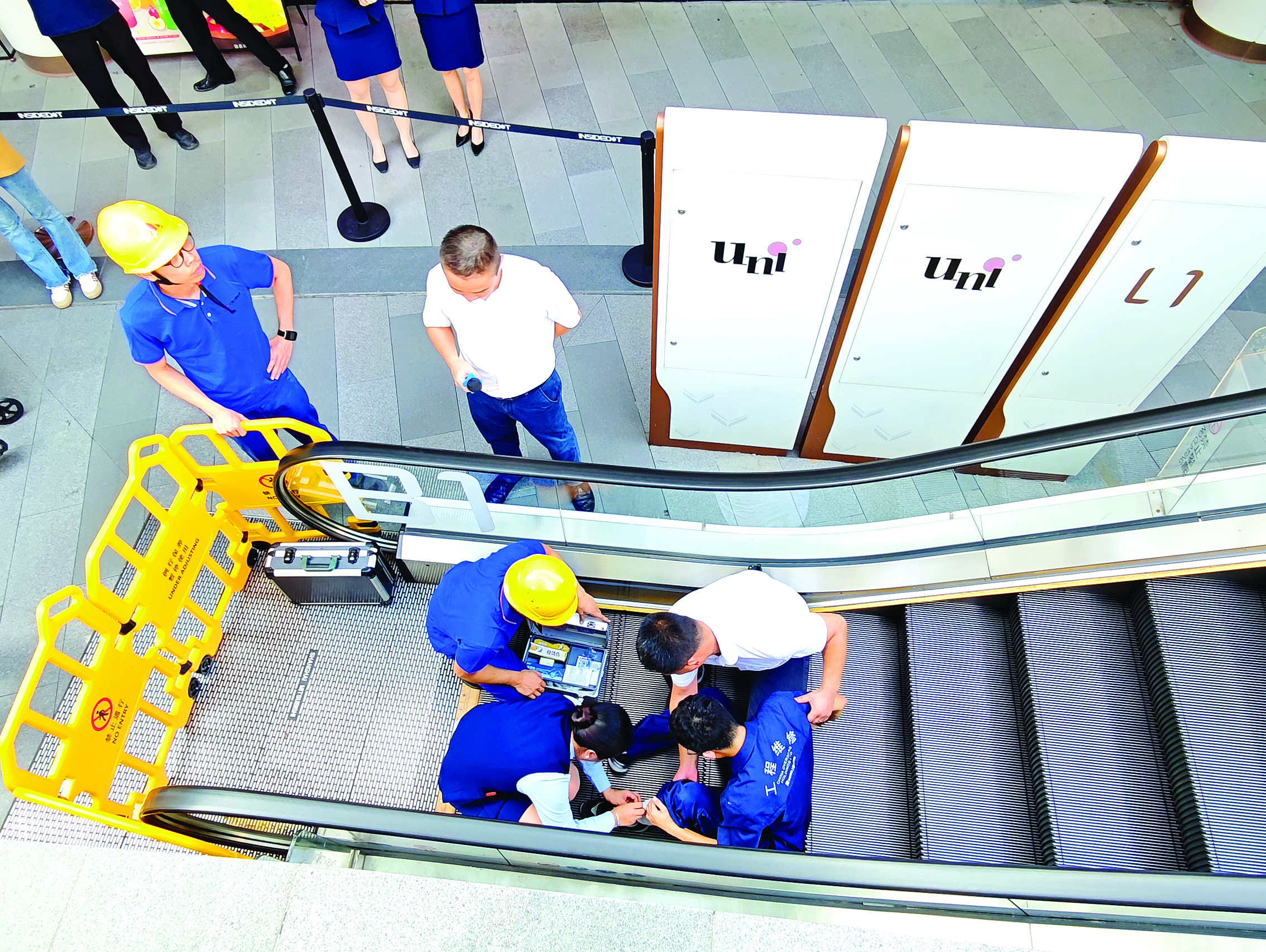 惠州市市場(chǎng)監(jiān)督管理局走進(jìn)商場(chǎng)開(kāi)展“電梯安全宣傳周”活動(dòng),圖為自動(dòng)扶梯應(yīng)急救援演練。