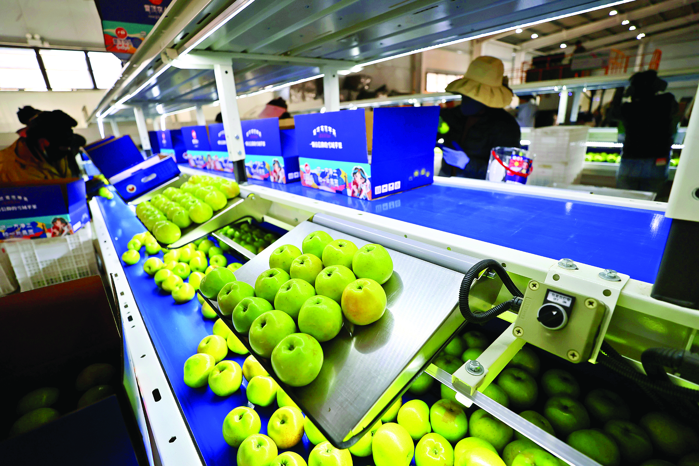 朗縣大山農(nóng)業(yè)科技有限公司智能化蘋果分揀車間。