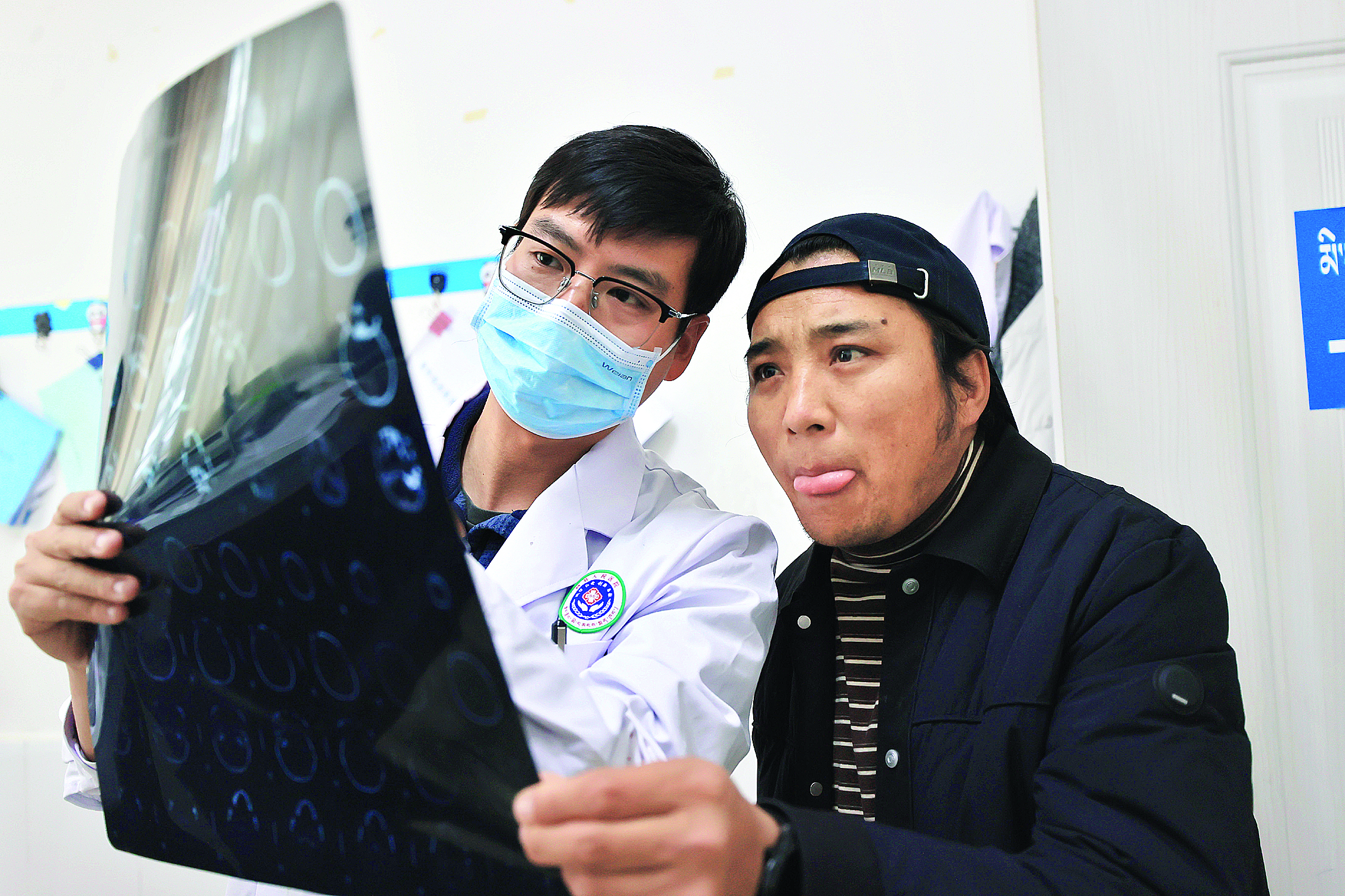 援藏醫(yī)生周雄(左)為患者講解檢查結(jié)果。