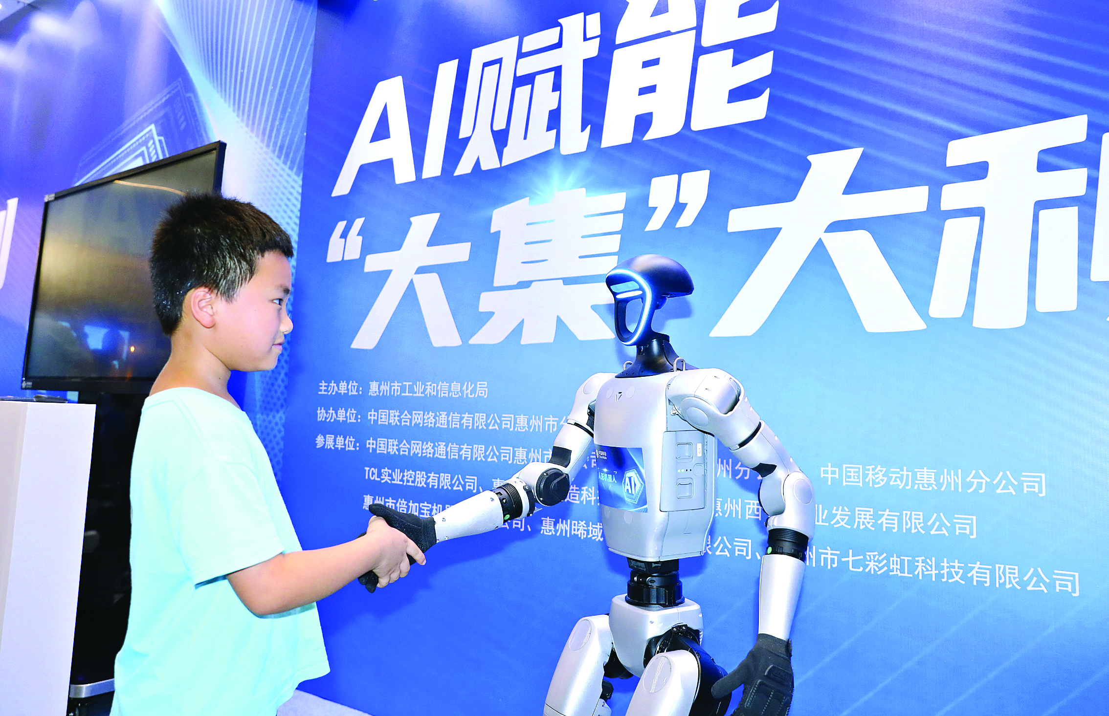 “AI賦能‘大集’大利”活動現(xiàn)場小朋友與機器人互動。