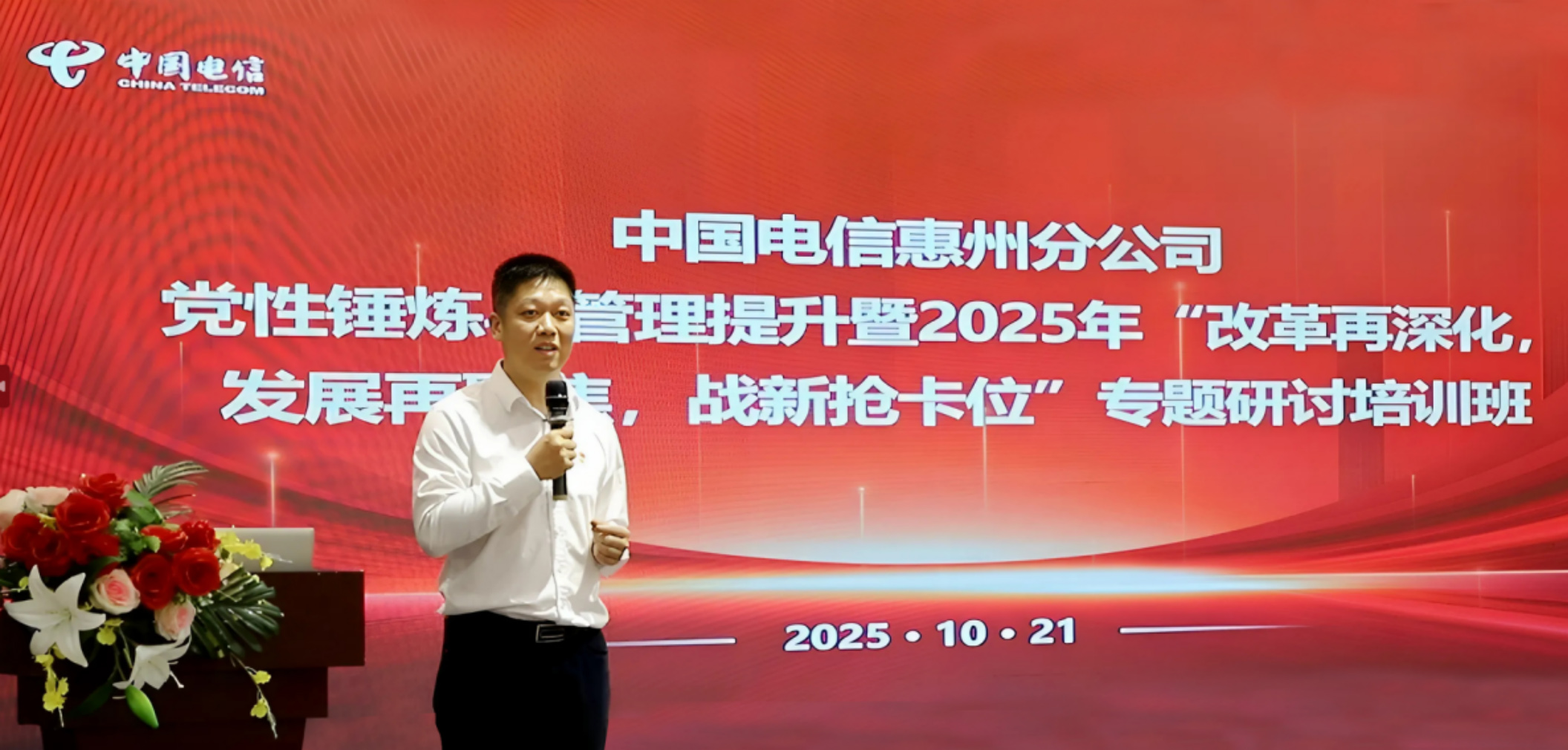惠州電信主要負(fù)責(zé)人蘆陳輝同志在干部黨性錘煉培訓(xùn)班作開(kāi)班講話(huà)。