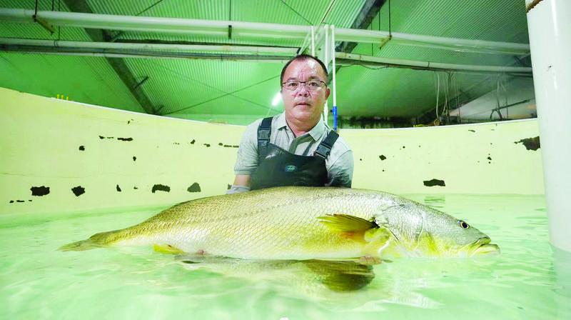 國家一級(jí)保護(hù)動(dòng)物黃唇魚在惠東實(shí)現(xiàn)全人工繁育。 惠州東江圖片社供圖
