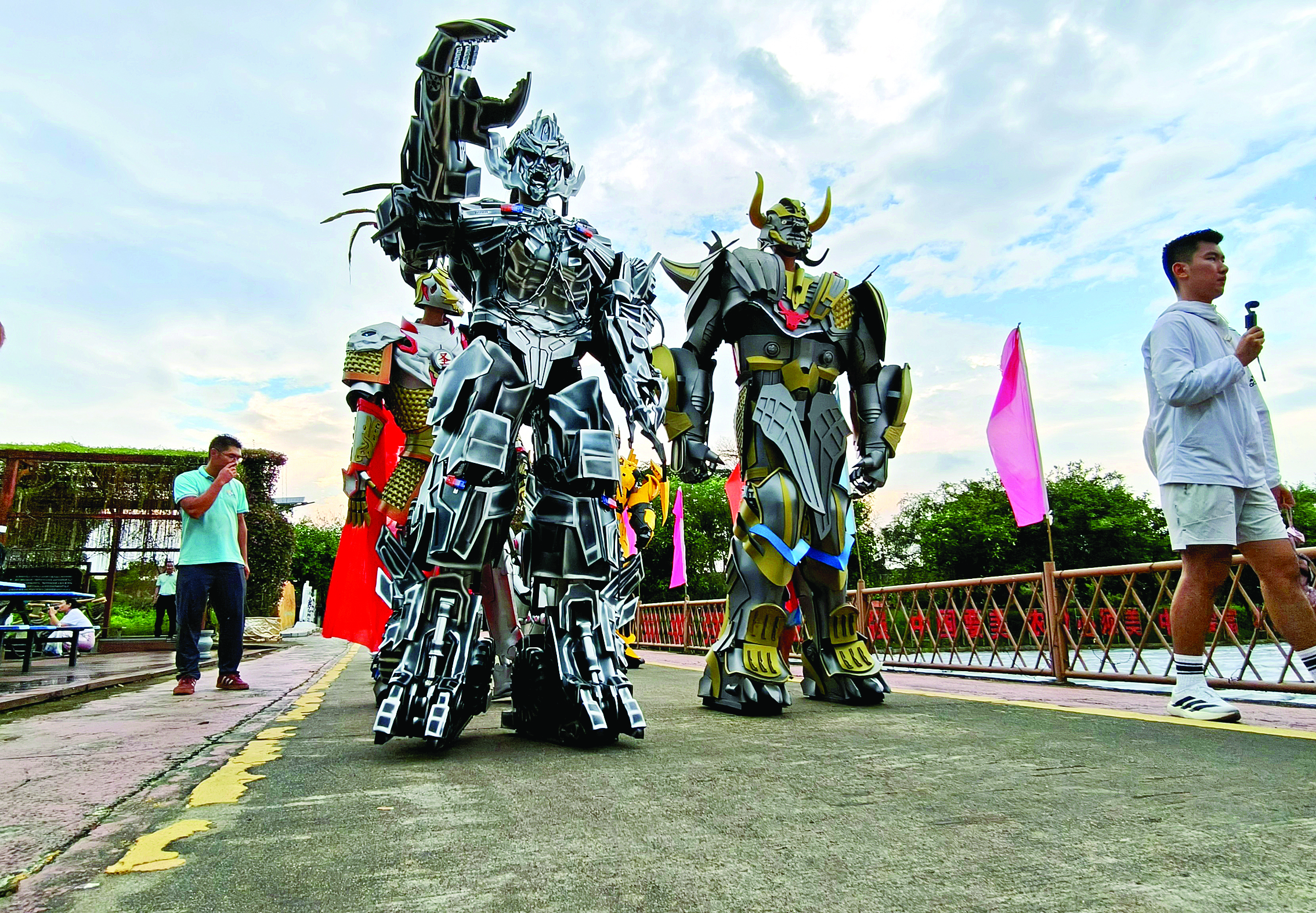 大黃蜂、擎天柱、威震天、鋼鐵俠……10月1日~8日,廣東航天農(nóng)業(yè)科技生態(tài)園將開展“未來紀元·AI機甲嘉年華”活動,大型實動機甲秀將伴游人過假期。屆時,整個景區(qū)將重構(gòu)為“AI機甲基地+航天基地”,引入兩三米高的大型可動機甲,實現(xiàn)與游客真實互動。記者了解到,大型可動機甲由專業(yè)演員穿上機甲服扮演,有大小不同造型50多種。此次大型實動機甲秀分晝夜雙模式。白天,科技沉浸互動體驗;夜晚,機甲幻境舞蹈狂歡,燈光秀流光溢彩。景區(qū)晚上還有昆蟲燈光秀,有鳥兒、小昆蟲、蝴蝶等多種動物造型燈,配上音樂和動物的模擬聲音,將更加精彩靈動。