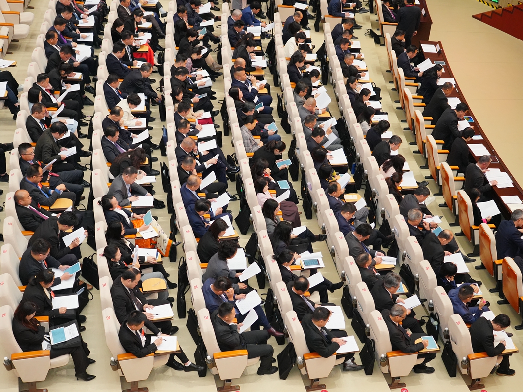 代表認(rèn)真聽取政府工作報(bào)告。