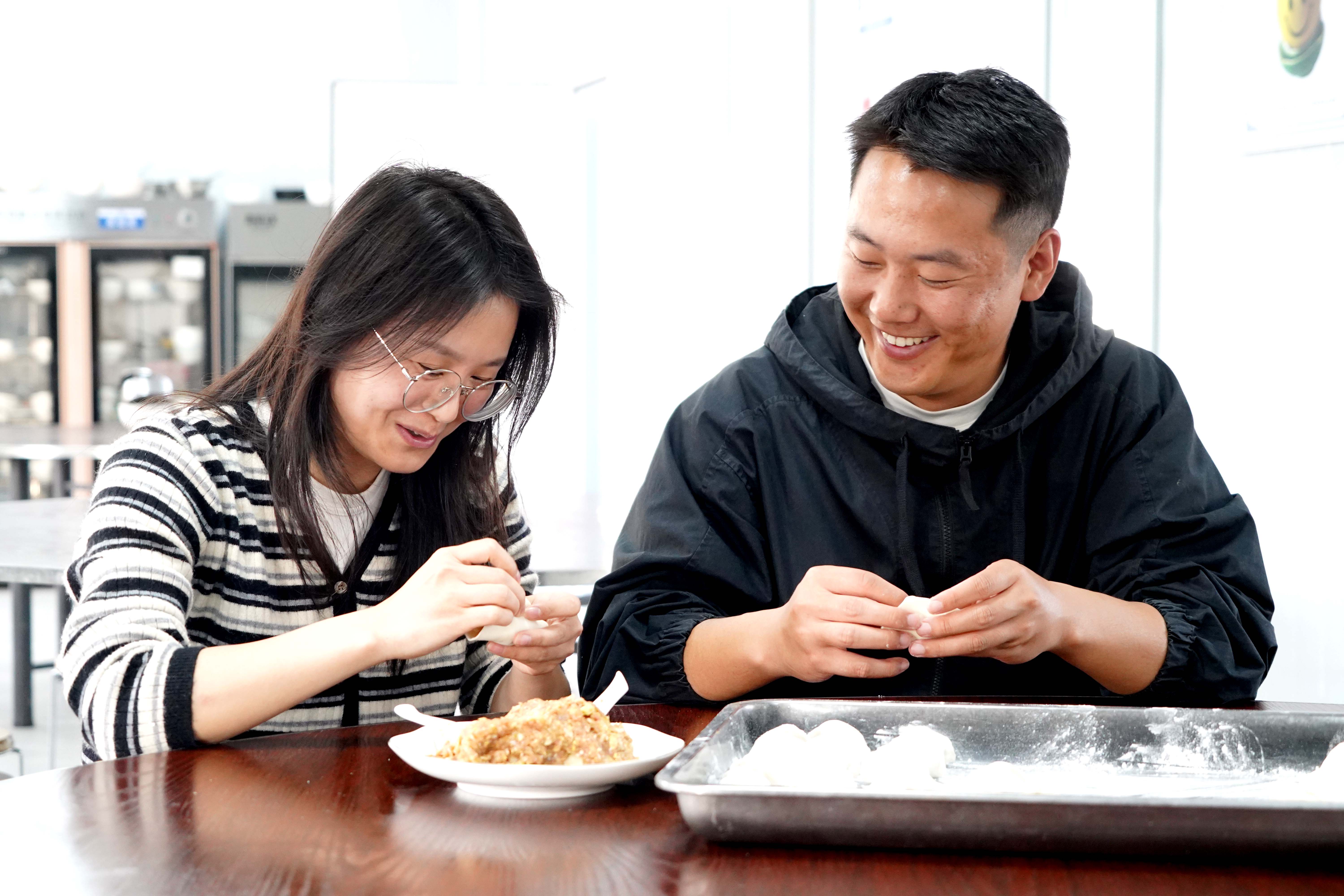 當(dāng)千家萬戶沉浸在團圓的喜悅中,在惠陽區(qū)秋長街道的惠坪高速公路項目三標段,同樣洋溢著濃濃的年味。餐廳里,來自江蘇的技術(shù)員左立業(yè)和從陜西遠道而來的女友何銳,正一邊包餃子,一邊笑著交談,面皮裹住餡料,也裹住了兩人跨越千里的陪伴與支持。