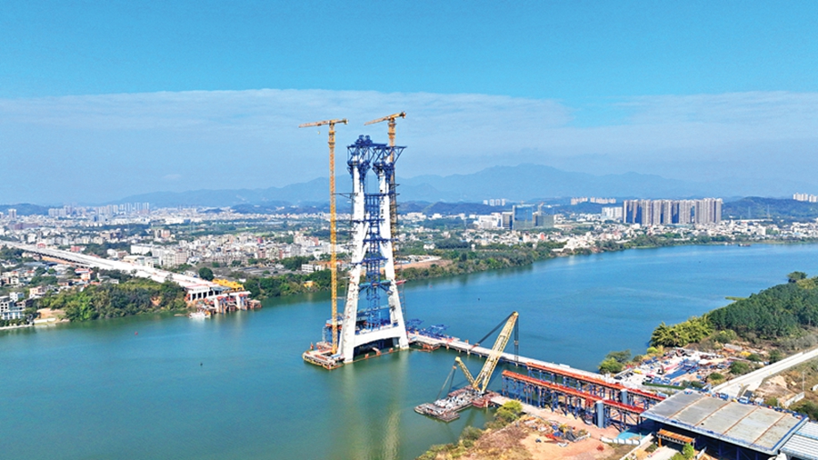 “我的一項重要工作是設(shè)備調(diào)控,通常是高空作業(yè)!彼谓▊フf。眼下,172米高的塔柱矗立在東江中間,正在進(jìn)行吊裝!鞍踩肋h(yuǎn)是第一位,必須確保每一步都精準(zhǔn)、高效!