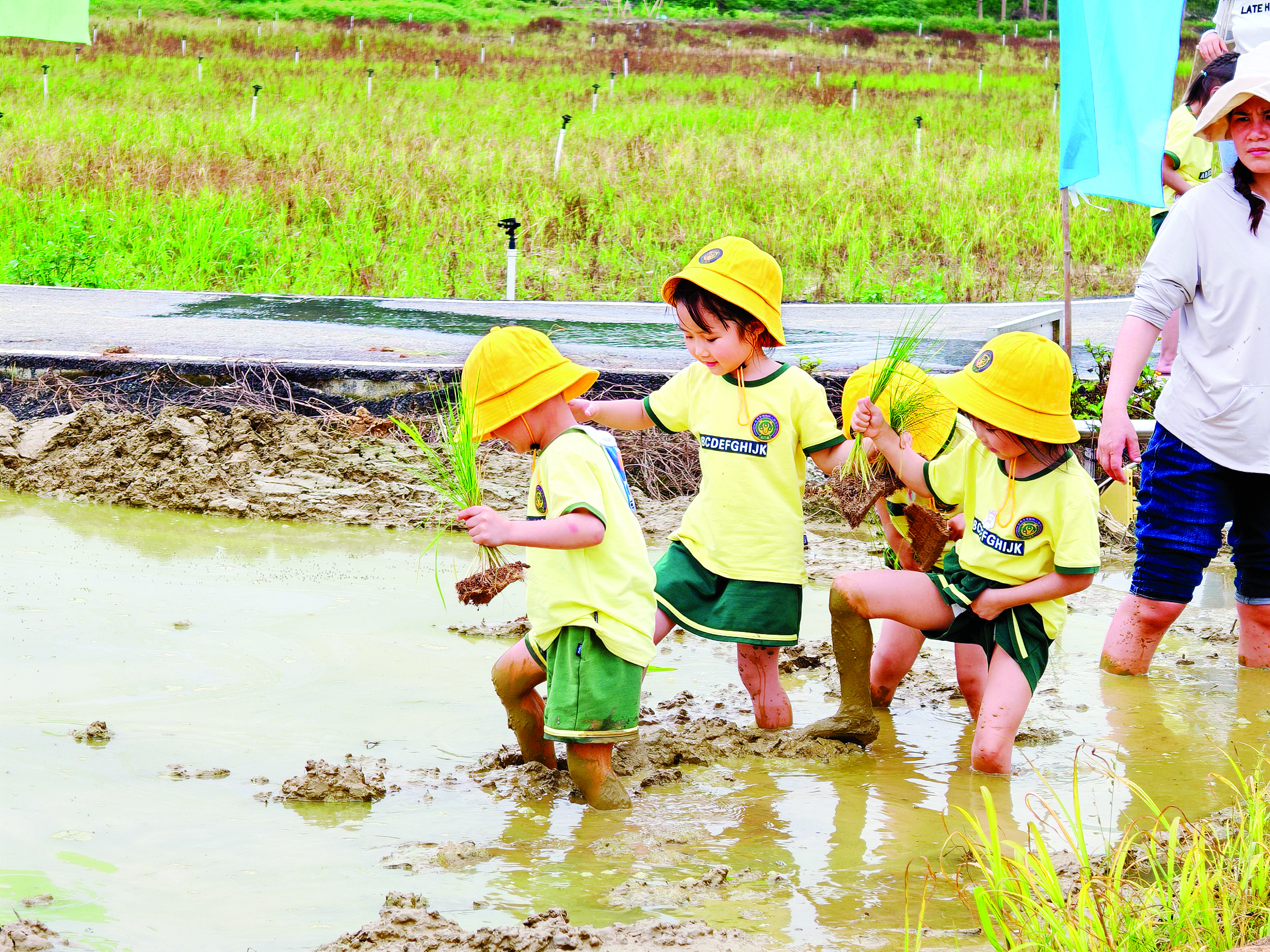 孩子們走進(jìn)稻田體驗插秧和農(nóng)耕文化。惠州東江圖片社供圖