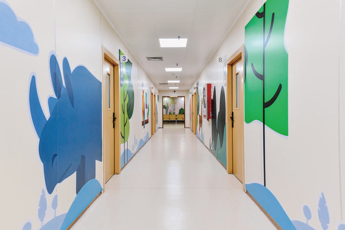溫暖的卡通墻繪、漂浮的五彩云朵燈、萌趣的小動物腳印,候診區(qū)的親子角、繪本架、涂鴉墻相映成趣,母嬰室、兒童馬桶、踩腳凳等配套盡顯貼心關(guān)愛……走進市第一人民醫(yī)院兒科門診,仿佛走進“療愈森林”,每一個細(xì)節(jié)都彰顯著兒童友好的元素。