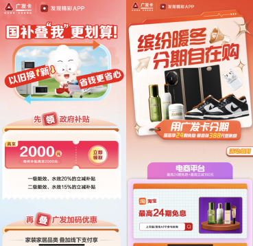 許先生的感慨背后,是廣發(fā)卡積極響應(yīng)國家政策,持續(xù)發(fā)力“以舊換新”。圍繞線上消費場景,廣發(fā)卡聯(lián)合京東、拼多多、唯品會、小米商城、榮耀商城、華為商城等消費行業(yè)商戶推出分期滿減活動,在享受“以舊換新”置換優(yōu)惠的基礎(chǔ)上疊加廣發(fā)卡分期優(yōu)惠。同時,進一步整合“發(fā)現(xiàn)精彩”App及廣發(fā)商城優(yōu)惠,讓客戶消費實現(xiàn)“領(lǐng)券-支付-核銷”全鏈路閉環(huán)。此外,廣發(fā)卡還與銀聯(lián)云閃付合作,在技術(shù)層面克服系統(tǒng)對接、數(shù)據(jù)傳輸?shù)入y題,讓 “國補優(yōu)惠” 與我行 “滿領(lǐng)優(yōu)惠” 的疊加更“絲滑”,確保客戶消費更順暢。