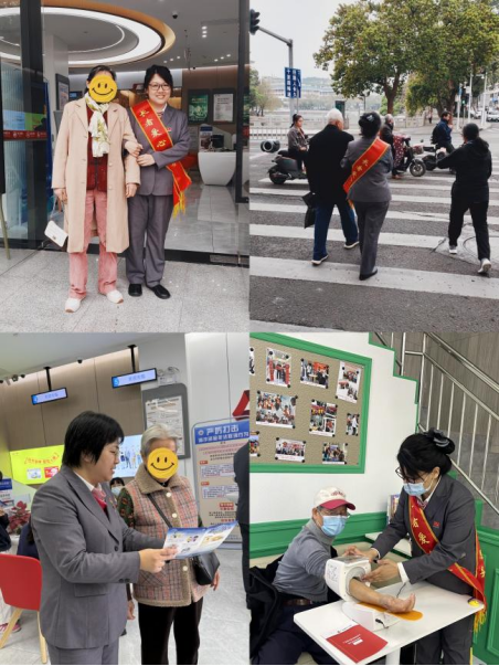 做優(yōu)適老服務(wù),鋪就銀發(fā)無憂“暖心路”。“阿婆慢行,我扶您過斑馬線”,在熙熙攘攘的南壇路口,支行長者服務(wù)專員穿梭于網(wǎng)點周邊街道,主動攙扶護(hù)送行動不便的老年客戶過馬路,用“一扶一護(hù)”詮釋金融溫度。當(dāng)看到張奶奶因路面濕滑險些摔倒時,大堂經(jīng)理立即上前攙扶,并開通“綠色通道”,全程陪同辦理存取款業(yè)務(wù)。“你們銀行的服務(wù)真是暖心!”張奶奶拉著工作人員的手連連道謝。此外,網(wǎng)點內(nèi)還設(shè)置血壓測量區(qū),以專業(yè)設(shè)備為有需求的客戶測量血壓。一位老年客戶表示:“銀行不僅幫我管錢,還關(guān)心我的健康,這樣的服務(wù)太實在了!”