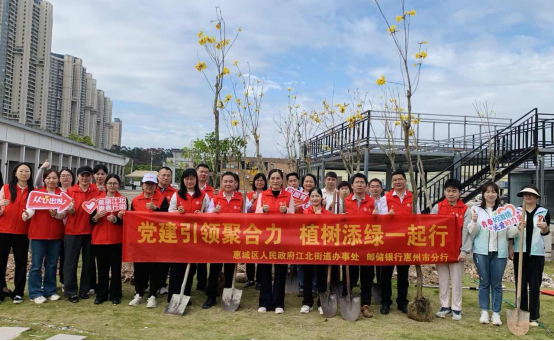 為深入學(xué)習(xí)貫徹習(xí)近平生態(tài)文明思想和習(xí)近平總書記視察廣東重要講話、重要指示精神,進一步貫徹落實省委、市委關(guān)于推進“百千萬工程”、綠美廣東生態(tài)建設(shè)和全省鄉(xiāng)村綠化三年計劃的部署要求,3月12日,郵儲銀行惠州市分行聯(lián)合惠城區(qū)人民政府江北街道辦事處開展“黨建引領(lǐng)聚合力,植樹添綠一起行”主題植樹活動。20余名黨員干部職工齊聚惠城區(qū)江北街道惠民大道35號街區(qū)溪流蕓,以“黨建紅”引領(lǐng)“生態(tài)綠”,共同種下黃花風(fēng)鈴樹苗、香樟樹苗等,用文明健康、綠色環(huán)保的方式引領(lǐng)鄉(xiāng)風(fēng)文明新風(fēng),助力“百千萬工程”。