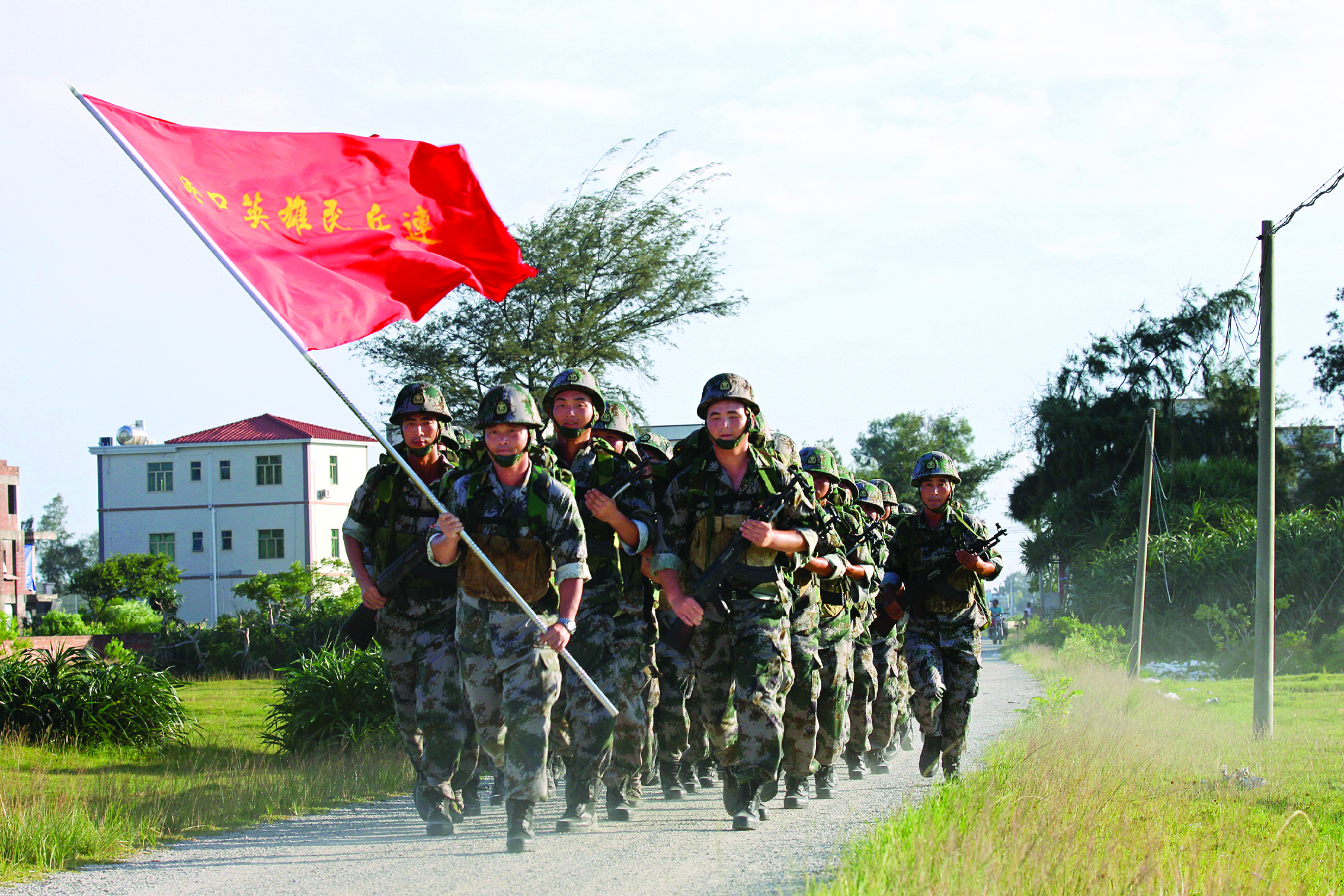 港口英雄民兵連日常訓(xùn)練。