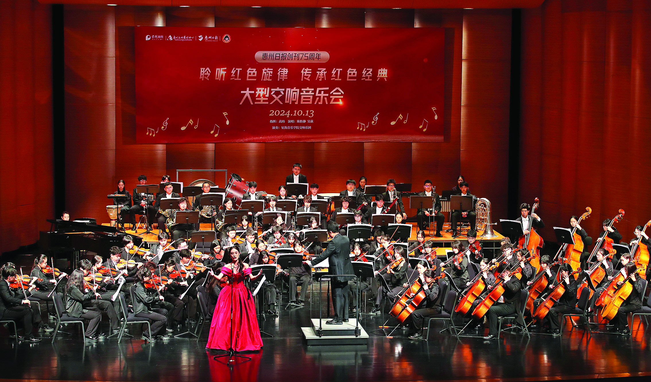 《惠州日?qǐng)?bào)》創(chuàng)刊75周年《聆聽(tīng)紅色旋律 傳承紅色經(jīng)典》大型交響音樂(lè)會(huì)在惠州文化藝術(shù)中心舉行;葜萑?qǐng)?bào)記者鐘暢新 攝