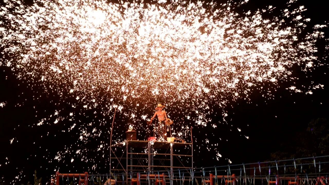 梁化鎮(zhèn)小禾洞見生態(tài)園非遺打鐵花表演。 通訊員戴相國(guó) 攝