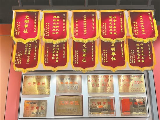 進入該樓層的榮譽室,一面面錦旗、一張張證書、一塊塊獎牌引人注目,它們雖靜靜陳列著,卻無聲地講述著連隊波瀾壯闊、充滿榮耀的崢嶸歲月。再往前,則可以看到民兵連的群英譜,不僅展示有連隊歷任主官,還有參戰(zhàn)立功受獎和平時立功受獎的人員。據(jù)了解,1962年的小星山戰(zhàn)斗以來,港口民兵連獲榮譽稱號1人,一等功臣5人,二等功臣7人,三等功臣15人。