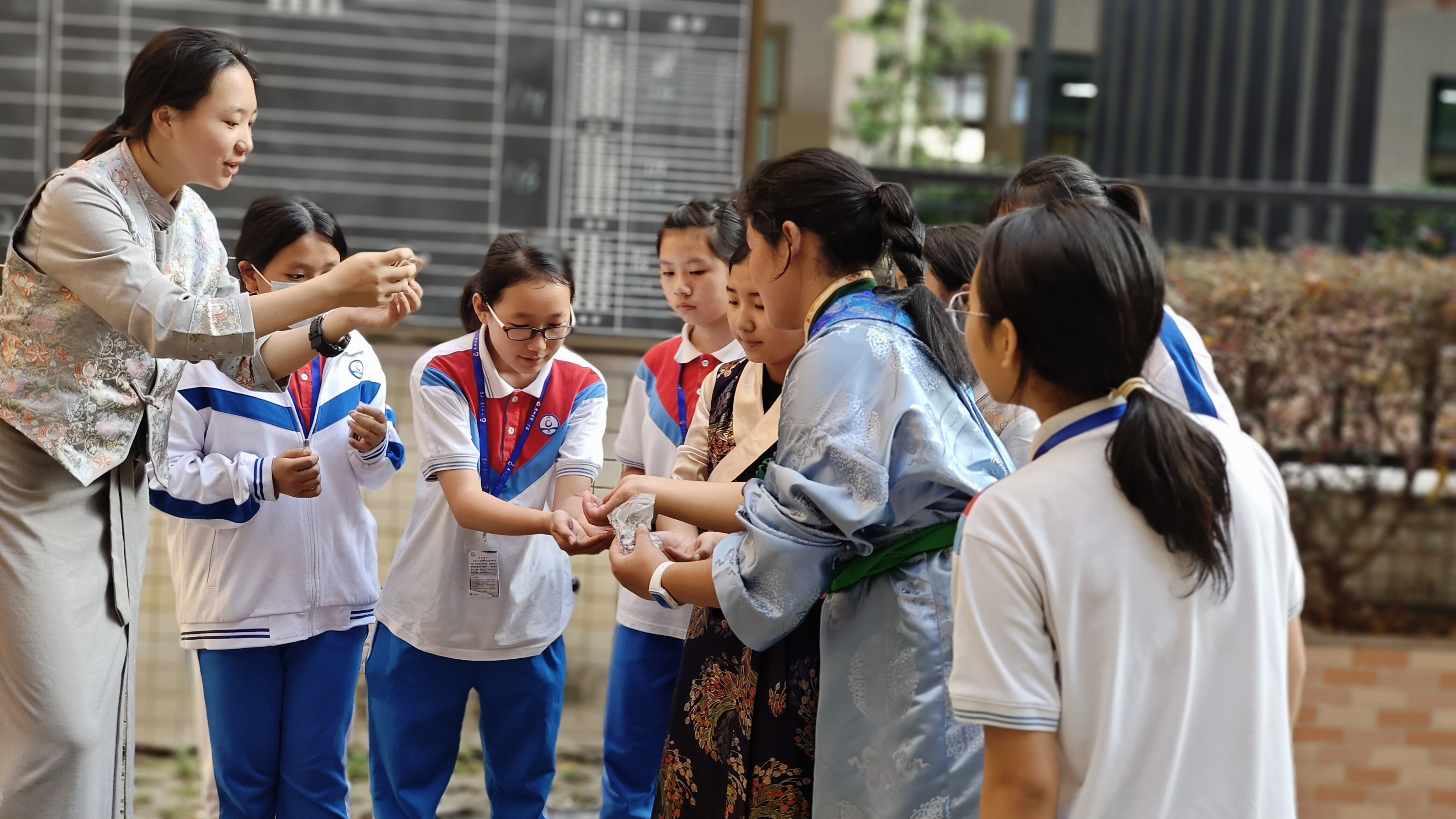 學校還推動西藏班與漢班結成“對子班”,通過多彩活動促進學生交往交流交融。如舉辦“我和我的祖國”活動,兩地學生一起朗誦詩歌、唱紅歌、互贈賀卡;“徒步紅花湖”活動,漢族學生幫藏生背書包,藏生教漢族學生說藏語;在美食節(jié)上,大家一起做惠州釀豆腐和西藏酥油茶、糌粑,分享各自的家鄉(xiāng)味道……讓民族團結的種子在實踐中生根發(fā)芽。