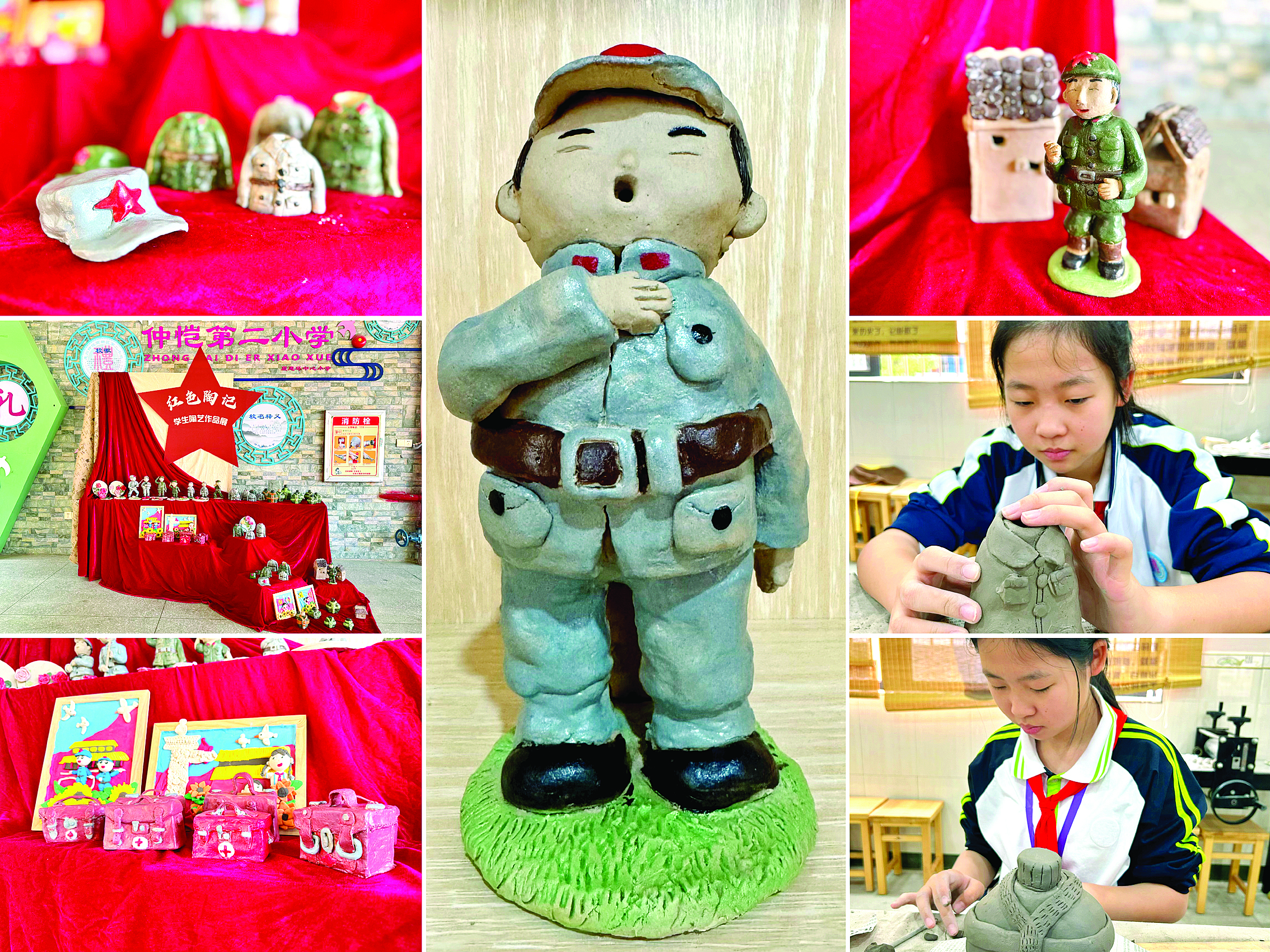 另一邊,“陶也”陶藝工作坊則以“溯源尋根,傳承民族精神”為內(nèi)核,構(gòu)建“以‘陶’生慧、以‘陶’促健、以‘陶’育美”的三維育人體系。從低年級玩泥塑形,到高年級創(chuàng)作《紅色記憶中的戰(zhàn)士》,每一件陶器都凝結(jié)著童真與家國情懷。更令人欣喜的是,學生親手捏塑的校吉祥物《禮娃》,已作為文化交流使者,走進香港、西藏、貴州等地學校,架起粵港藏黔美育協(xié)作的橋梁。該工作坊榮獲惠州市中小學生藝術(shù)展演二等獎,教師團隊發(fā)表10余篇獲獎論文,《以陶藝為筆,繪就美育新畫卷》更斬獲2025年惠州市大中小幼美育案例一等獎。