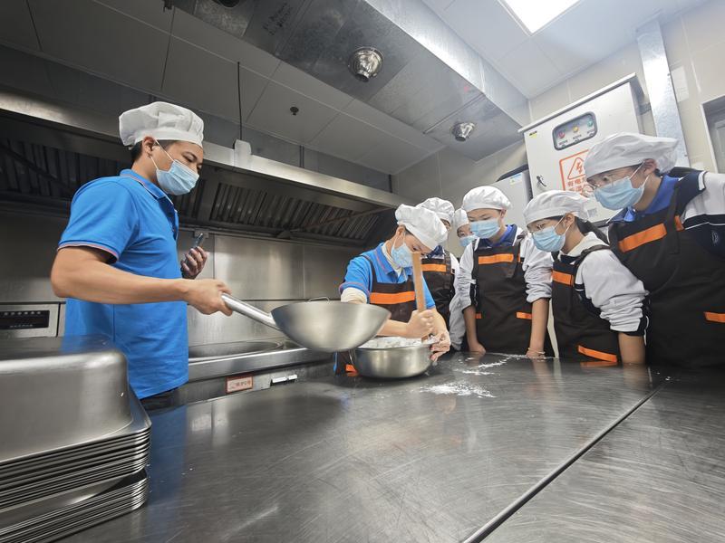在大亞灣第六中學(xué),食堂后廚變身為生動的勞動教育課堂。