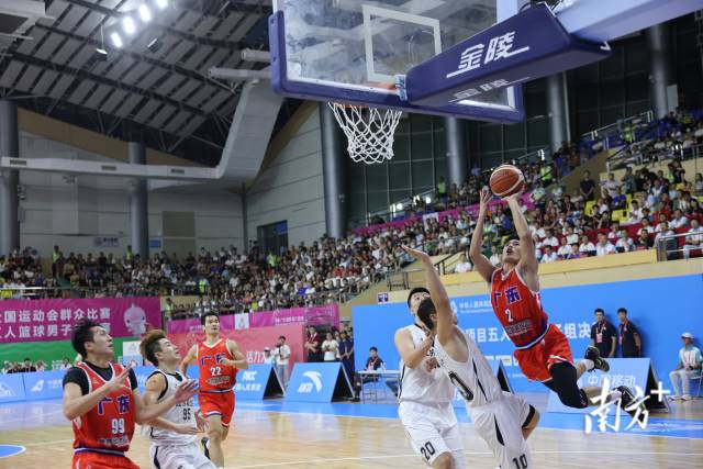 十五運(yùn)會群眾體育男子組五人籃球A組決賽現(xiàn)場。鄭新洽 攝