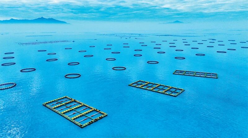 在“百千萬(wàn)工程”實(shí)施過(guò)程中,廣東引導(dǎo)各地“靠山唱山歌、靠海念海經(jīng)”,因地制宜發(fā)展壯大縣域特色產(chǎn)業(yè)。潮州市饒平縣探索“良種場(chǎng)+企業(yè)+農(nóng)戶”模式,大力建設(shè)現(xiàn)代化海洋牧場(chǎng),將海洋資源優(yōu)勢(shì)轉(zhuǎn)化為經(jīng)濟(jì)發(fā)展動(dòng)能。圖為2024年6月拍攝的饒平縣重力式深水網(wǎng)箱養(yǎng)殖基地。 廣東省潮州市饒平縣“百千萬(wàn)工程”指揮部辦公室供圖