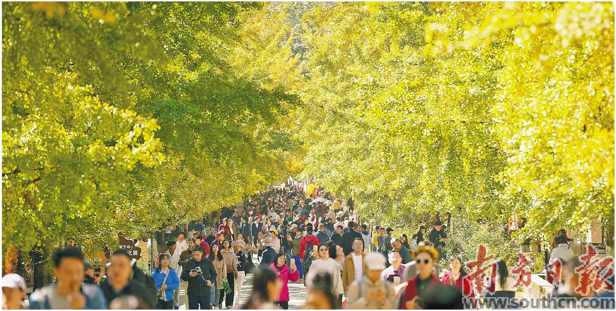 日前,韶關(guān)南雄的銀杏迎來(lái)最佳觀賞期。作為國(guó)內(nèi)緯度最低的天然銀杏生長(zhǎng)區(qū)域,南雄有銀杏林10萬(wàn)多畝,是嶺南秋色的“顏值擔(dān)當(dāng)”。目前,南雄帽子峰最負(fù)盛名的銀杏觀賞點(diǎn)——“黃金大道”的銀杏已換上金裝,迎來(lái)大量游客賞景。