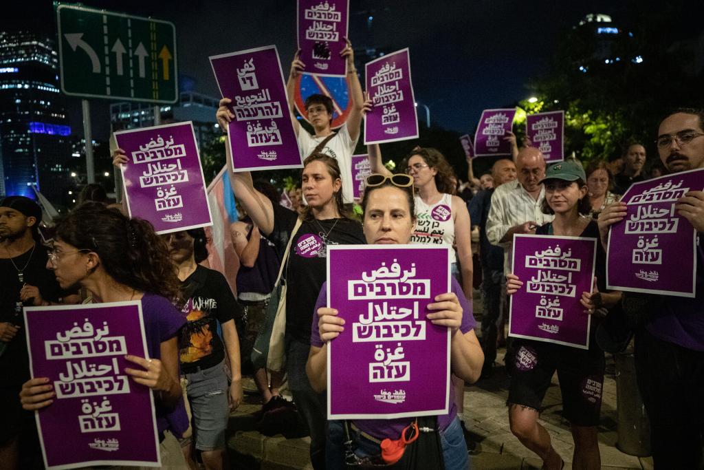 8月17日晚,人們在以色列中部城市特拉維夫的以色列國防部大樓附近參加游行示威活動(dòng),敦促以政府盡快與哈馬斯達(dá)成停火協(xié)議,讓所有被扣押人員獲釋。新華社記者陳君清攝