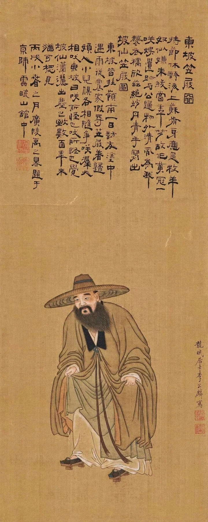 宋人李公麟《東坡笠屐圖》。