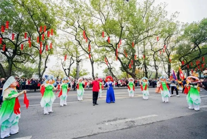 元宵大巡游活動現(xiàn)場中,客家涼帽與惠陽皆歌聯(lián)袂上場。