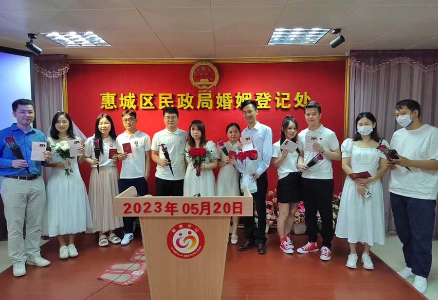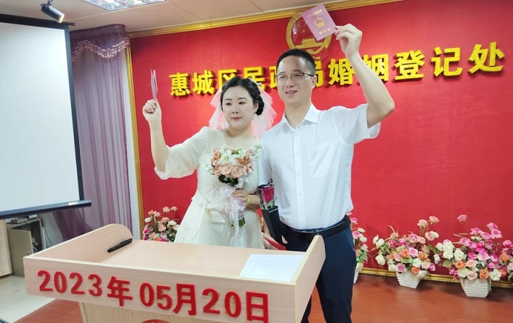 今年“5·20”恰逢周末,記者了解到,全市婚姻登記處“為愛加班”,當(dāng)天惠城區(qū)、惠陽區(qū)、博羅縣等婚姻登記處為辦理婚姻登記的新人舉行新婚講座和集體頒證儀式,當(dāng)日開放所有登記窗口,配足配齊婚姻登記員,全力保障廣大市民婚姻登記需求。