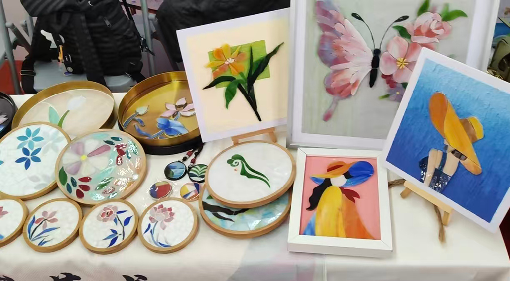 現(xiàn)場(chǎng),多款本土特色手工文創(chuàng)產(chǎn)品格外吸睛,參展企業(yè)紛紛以產(chǎn)品為載體,為惠州文化發(fā)展賦能添力;葜菔兴嚨洳什=ú挠邢薰編(lái)了多款精美的玻璃工藝品,公司總經(jīng)理金美莉介紹:“你看,這是我們用彩色玻璃制作的藝術(shù)鑲嵌作品,將龍門(mén)年桔的元素融入其中,以玻璃為載體呈現(xiàn)文創(chuàng)魅力,形式十分新穎。我們依托彩色玻璃研發(fā)了各類文創(chuàng)產(chǎn)品。在助力環(huán)南昆山—羅浮山縣鎮(zhèn)村高質(zhì)量發(fā)展引領(lǐng)區(qū)建設(shè)中,我們免費(fèi)為周邊鄉(xiāng)村的婦女開(kāi)展玻璃工藝品手工DIY材料包培訓(xùn),讓她們能在家門(mén)口實(shí)現(xiàn)就業(yè)增收!