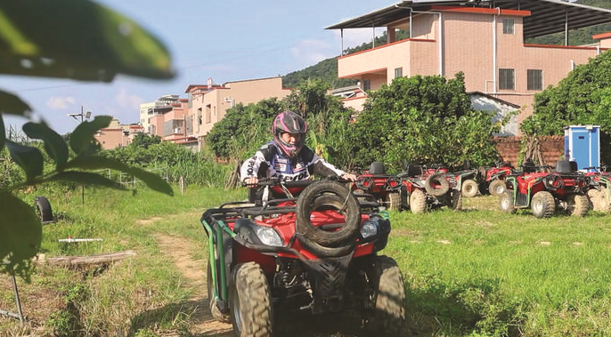 游客在企嶺森林游樂園騎上叢林越野車;葜萑請笥浾咔袷骀 陳濤 攝