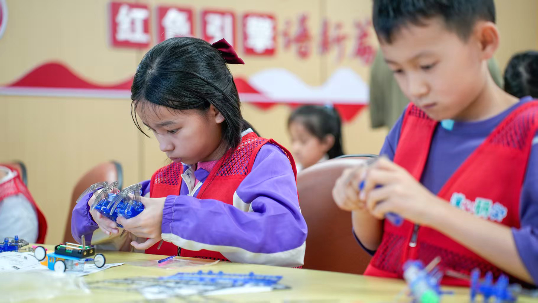 動手環(huán)節(jié)成為了孩子們的探索樂園。他們親手拼搭爬蟲機(jī)器人和仿生蜘蛛機(jī)器人,在一次次嘗試與調(diào)整中,感受著征服難題的滿足感,動手能力和創(chuàng)新思維悄然提升。