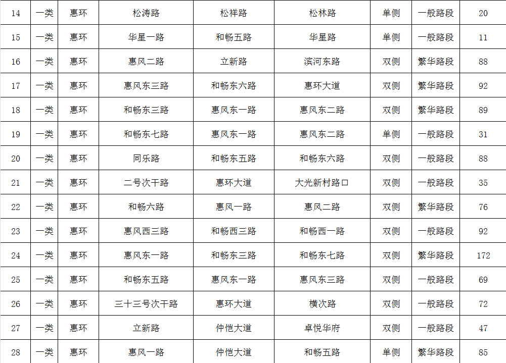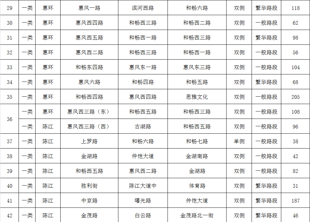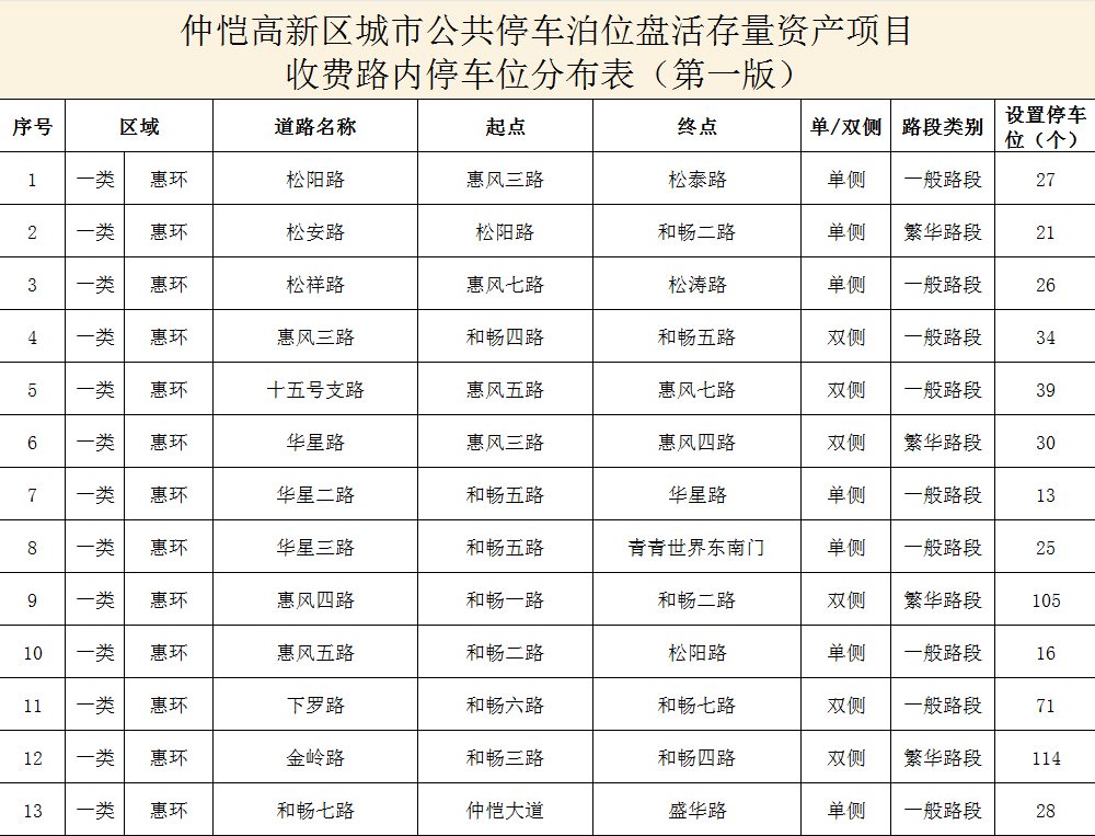 (項(xiàng)目收費(fèi)路內(nèi)停車(chē)位分布表)
