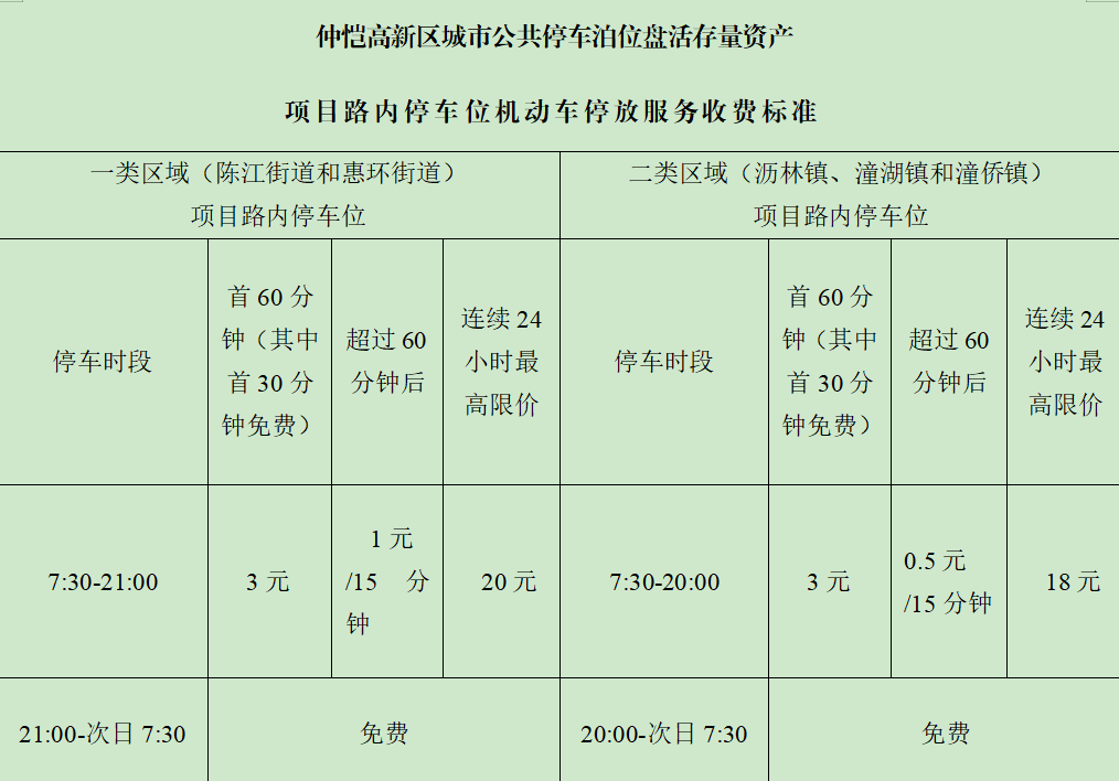 本次收費(fèi)實(shí)行政府指導(dǎo)價(jià)管理,并采取分區(qū)域差異化收費(fèi)標(biāo)準(zhǔn),將全區(qū)劃分為一類(lèi)區(qū)域(惠環(huán)街道、陳江街道)和二類(lèi)區(qū)域(瀝林鎮(zhèn)、潼湖鎮(zhèn)、潼僑鎮(zhèn)),以契合不同區(qū)域的交通壓力和停車(chē)需求。收費(fèi)標(biāo)準(zhǔn)實(shí)行政府指導(dǎo)價(jià)管理,公布的均為最高限價(jià)。