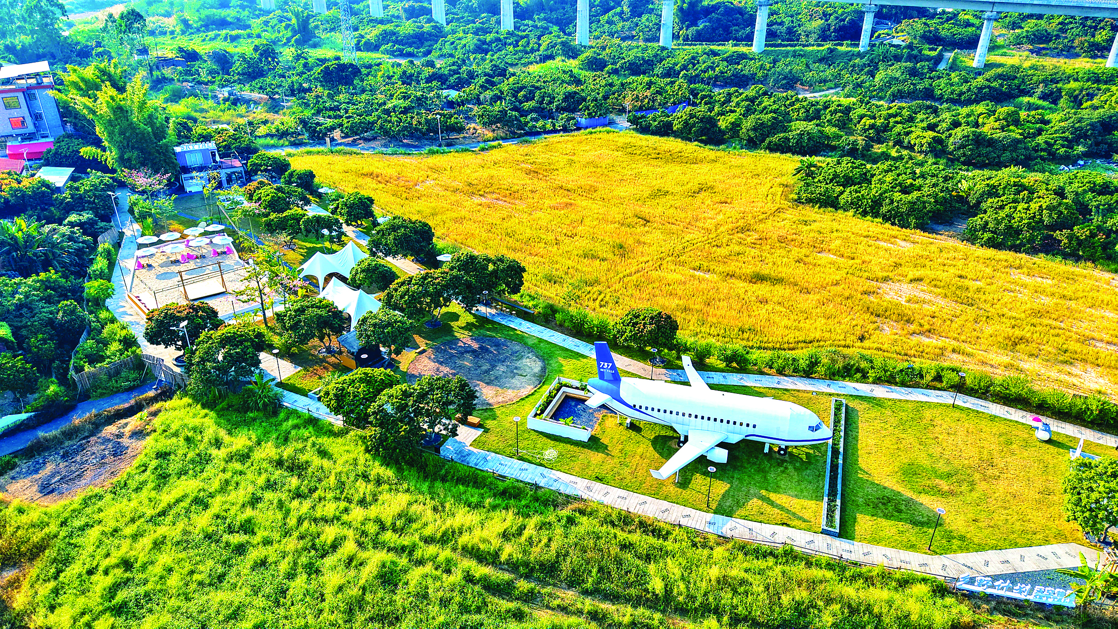 一架“飛”進(jìn)村里的波音737飛機(jī)模型餐廳吸引游客駐足;連片的紅頭蔥田泛起層層綠浪,在微風(fēng)中搖曳生姿;煥然一新的美麗示范主街埔仔路,整潔街景與特色墻繪相映成趣……在瀝林鎮(zhèn),“荔林古韻·鵝鄉(xiāng)新象”美麗鄉(xiāng)村走廊正串珠成鏈,將詩意風(fēng)景、田園趣味與鄉(xiāng)村新生活融為一體。