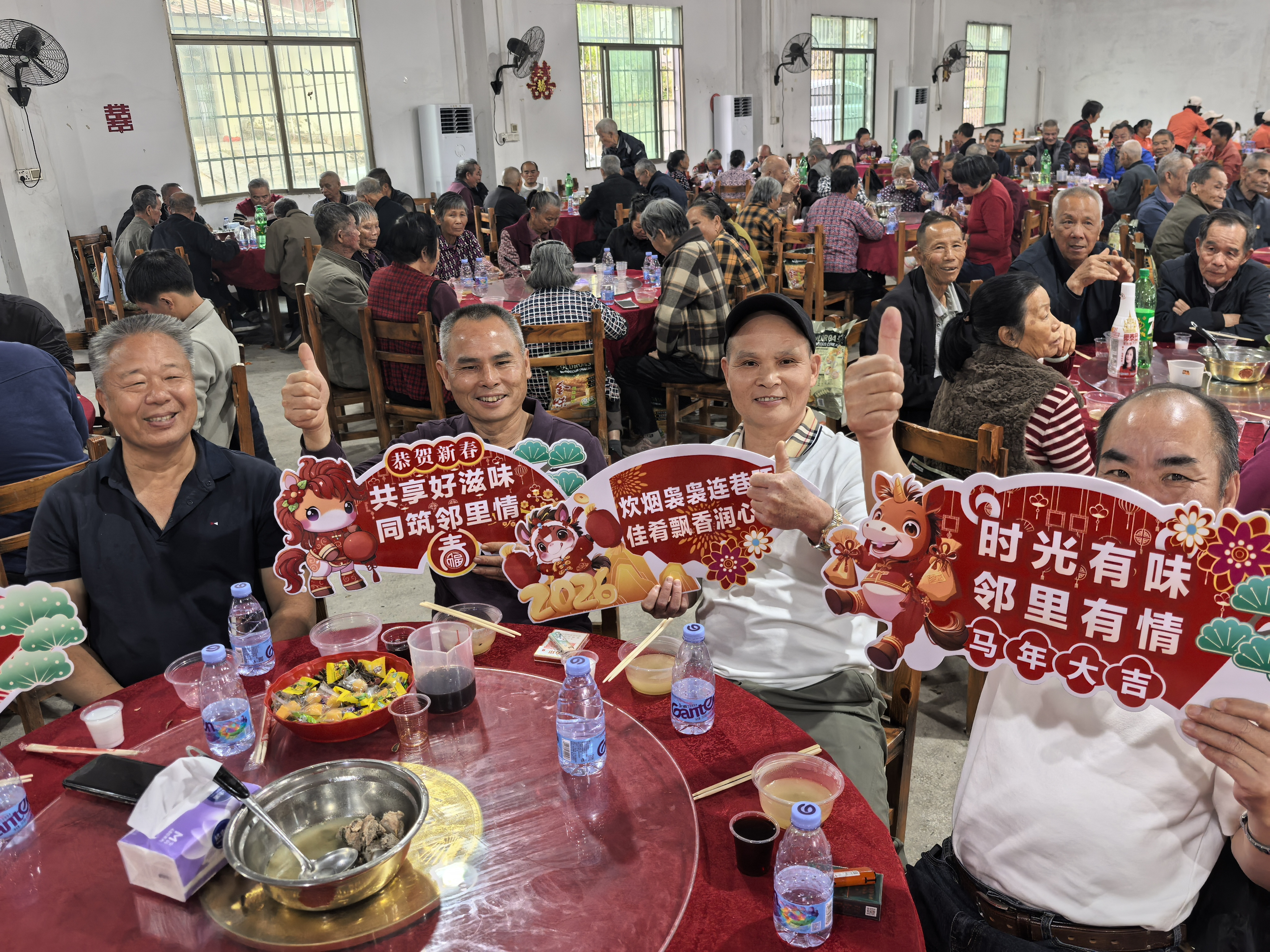 最動人的瞬間,當屬鄰里共享宴席的溫情時刻。熱氣騰騰的美食端上餐桌,大家圍坐一堂,一邊品嘗熟悉的老味道,一邊拉家常、敘情誼,歡聲笑語間,鄰里情誼愈發(fā)濃厚。鶴溪村“兩委”干部與長者們同坐共餐,傾聽村民關于村莊建設、民生保障等方面的意見建議!盎顒犹柿!既有好吃的老味道,又有好看的節(jié)目,滿場都是濃濃的新年味兒,心里暖和極了!贝迕耜P大媽的真情流露,也通過鏡頭傳遞給了云端的每一位網(wǎng)友。