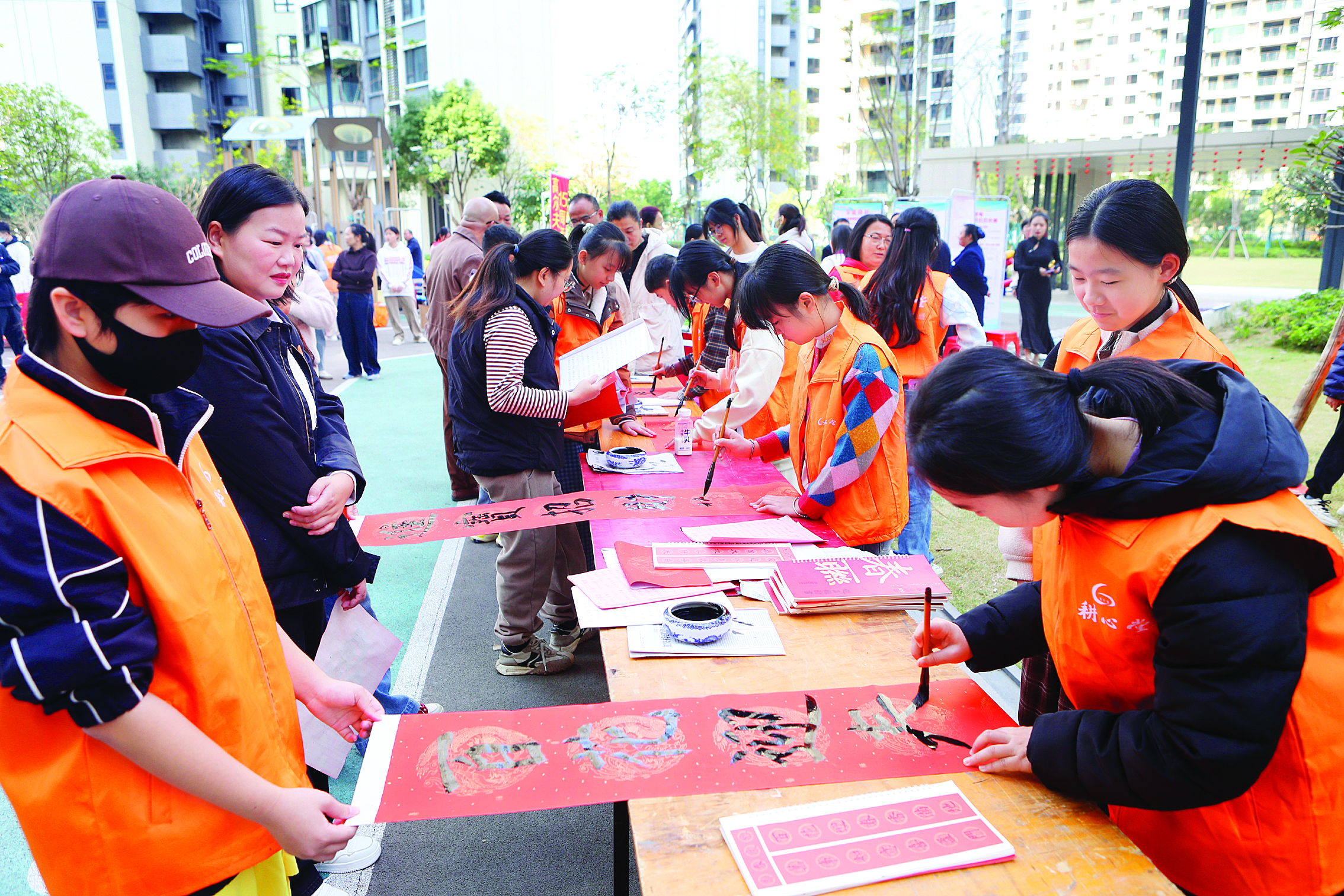 志愿者為居民寫春聯(lián),送祝福;葜萑?qǐng)?bào)記者鐘暢新 攝