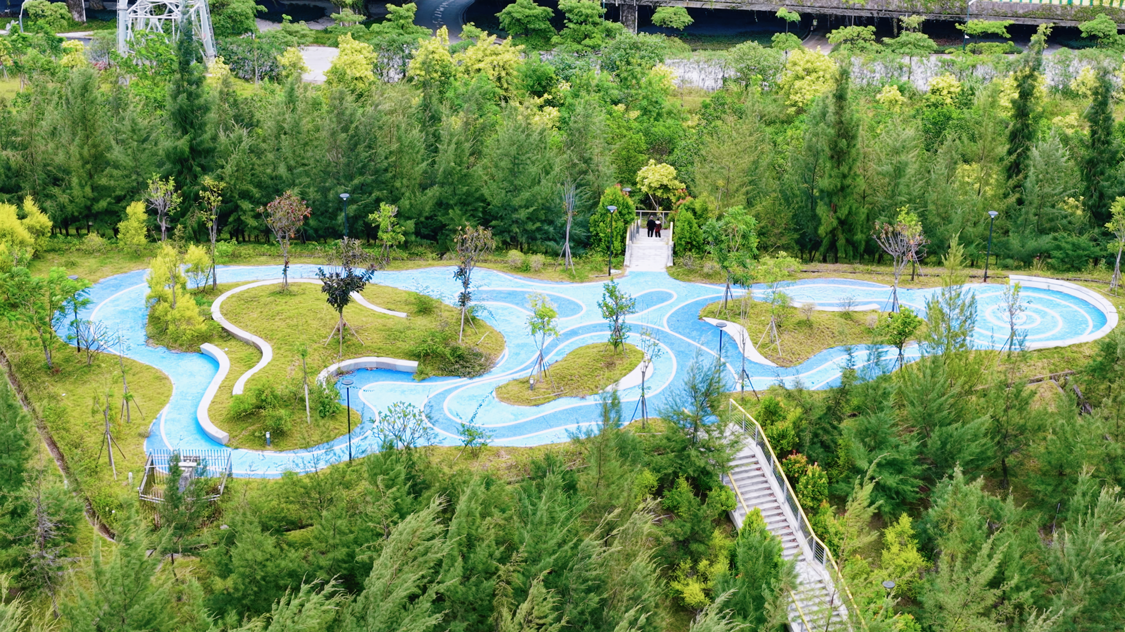 園內(nèi)還鋪設(shè)了色彩鮮艷的觀光步道,市民還可拾級(jí)而上登高望遠(yuǎn)。公園的制高點(diǎn)修建了一座小巧的觀景平臺(tái),站在平臺(tái)上極目遠(yuǎn)眺,大亞灣的城市風(fēng)光盡收眼底。遠(yuǎn)處,高樓大廈鱗次櫛比,與藍(lán)天白云相互映襯;近處,綠樹(shù)成蔭,繁花似錦,游人置身于一幅美麗的畫(huà)卷之中。與公園一路之隔便是紅樹(shù)林公園,游人可沿線(xiàn)連片游覽,盡享城市綠化帶來(lái)的美好與愜意!澳壳肮珗@已經(jīng)建設(shè)完畢,正在養(yǎng)護(hù)期內(nèi),預(yù)計(jì)年內(nèi)全面對(duì)外開(kāi)放!眳^(qū)公建中心有關(guān)負(fù)責(zé)人表示。