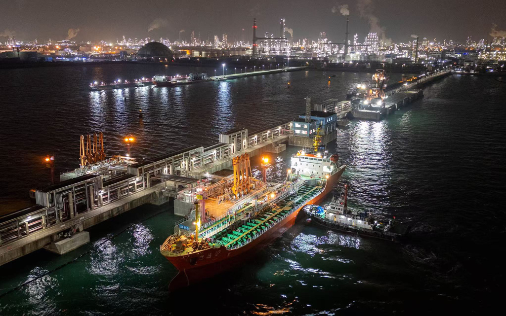 中海油惠州石化有限公司春節(jié)不打烊,碼頭繁忙。