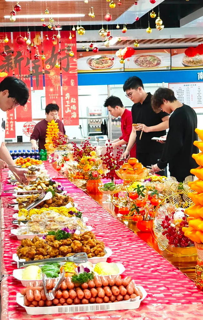 光弘科技以豐盛菜肴款待留崗過年的伙伴。