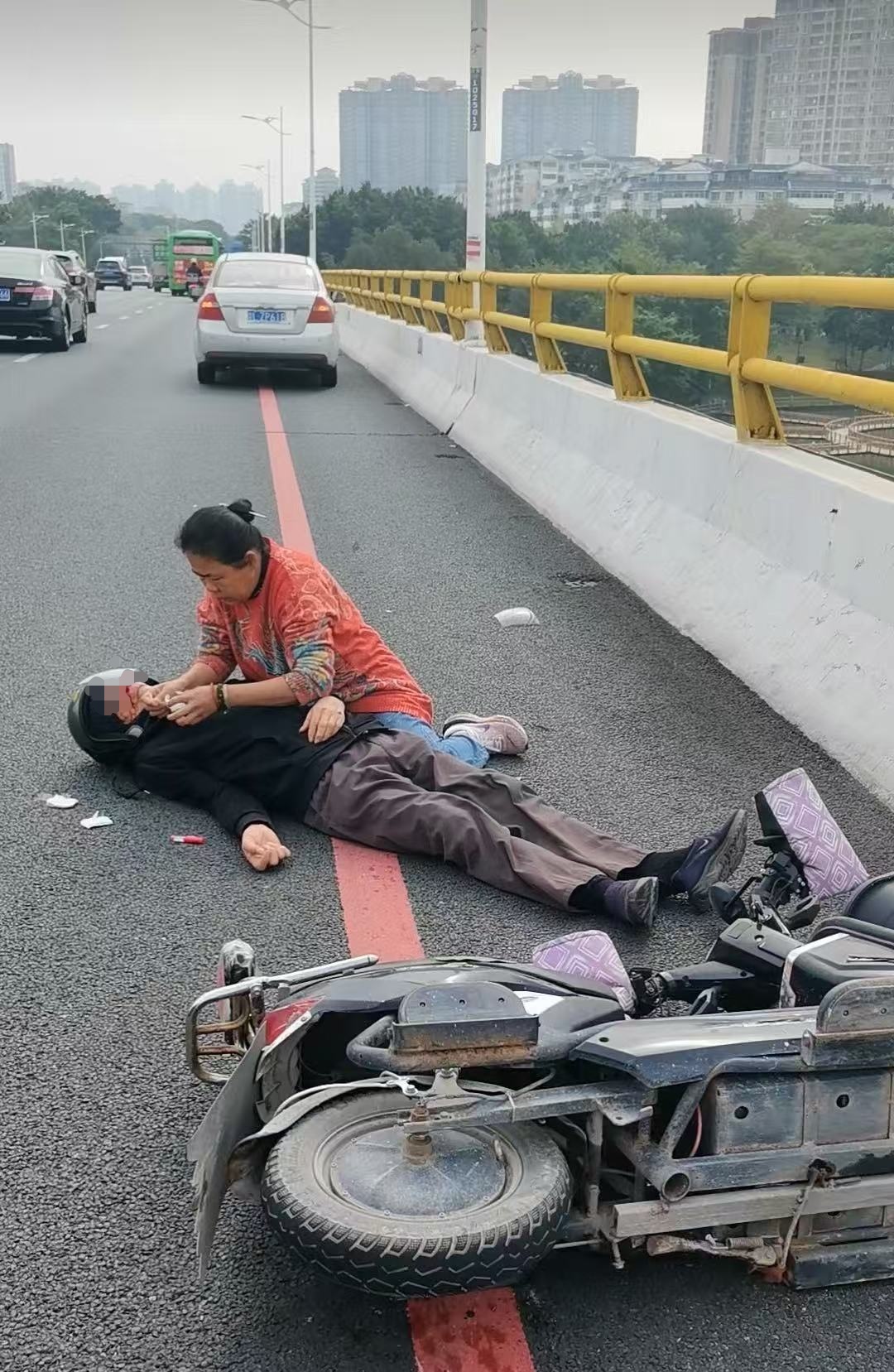 吳惠珊途經(jīng)東江大橋時救助受傷倒地的市民。