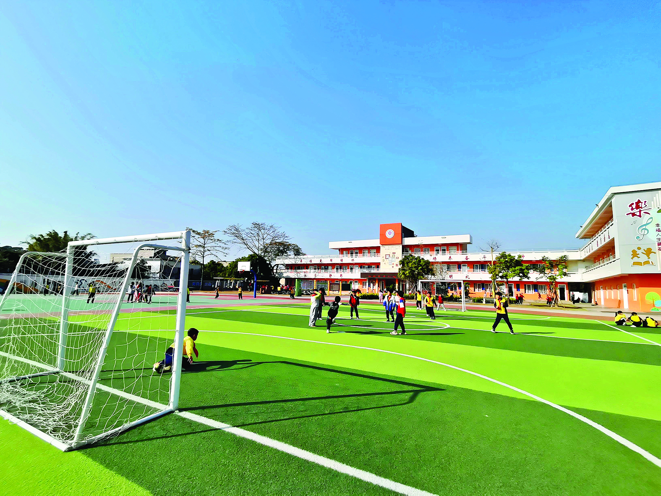 下課鈴響,馬安鎮(zhèn)新樂(lè)小學(xué)的孩子們奔向操場(chǎng),踢足球、打籃球、玩游戲……在設(shè)施齊全的操場(chǎng)上,孩子們的燦爛笑臉成為校園最動(dòng)人的風(fēng)景。