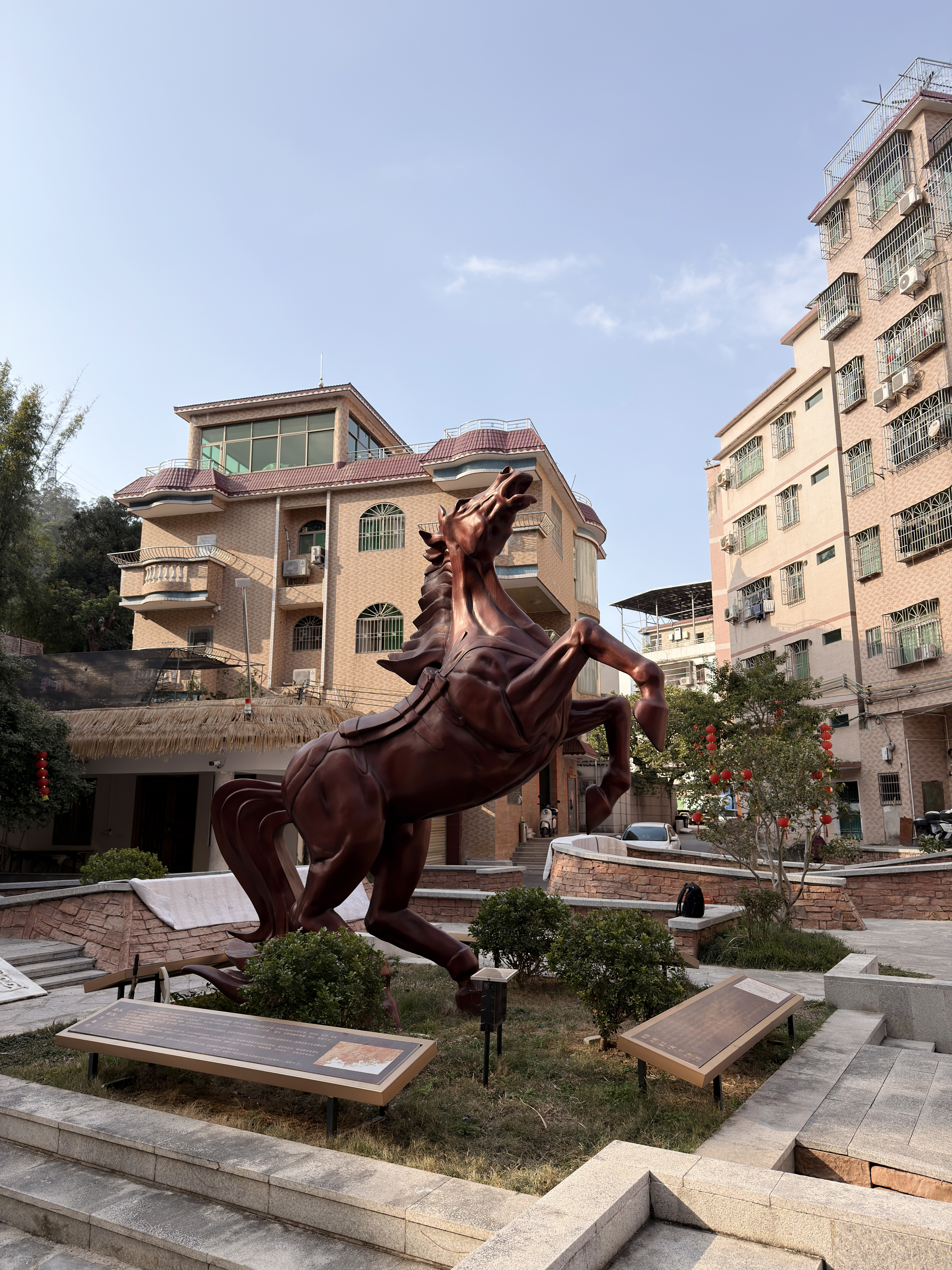 下馬莊將軍泉?dú)v史文化園里的汗血寶馬雕塑。惠州日報(bào)記者張藝明 攝