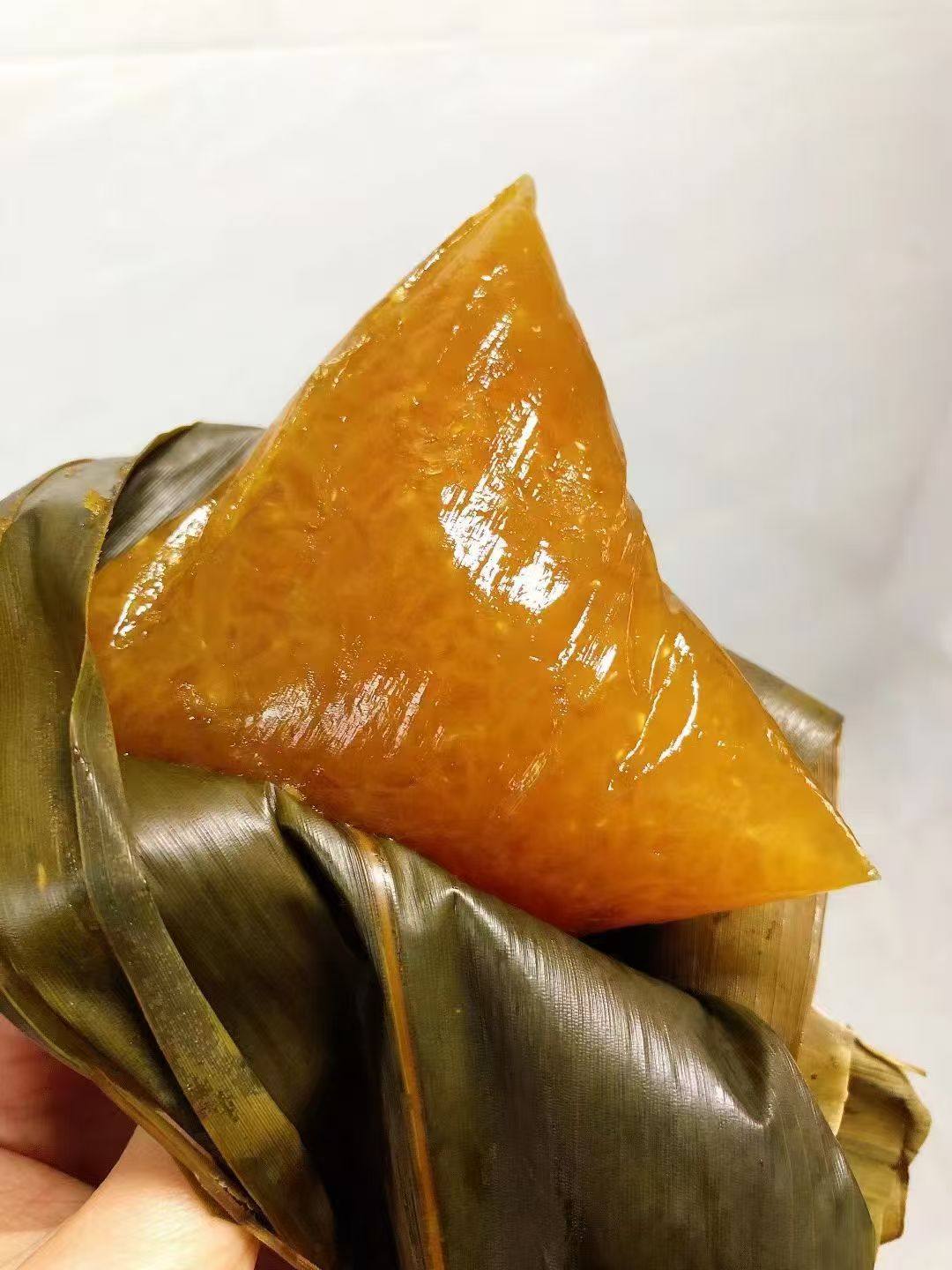 采用客家古法工藝制作灰水粽,首先要從一種叫“布荊”的植物入手。村民們將布荊枝葉曬干、燒灰,再加入煮沸的水,經(jīng)過沉淀過濾后制成灰水。接著,把精選的糯米放入灰水中浸泡4至5個(gè)小時(shí),讓糯米充分吸收灰水的精華。隨后,將包好的粽子用柴火煮上10多個(gè)小時(shí),這樣煮出來的灰水粽,色澤金黃,入口軟糯,帶著一絲自然的清香。蘸上本地土蜂蜜,甜糯相宜。