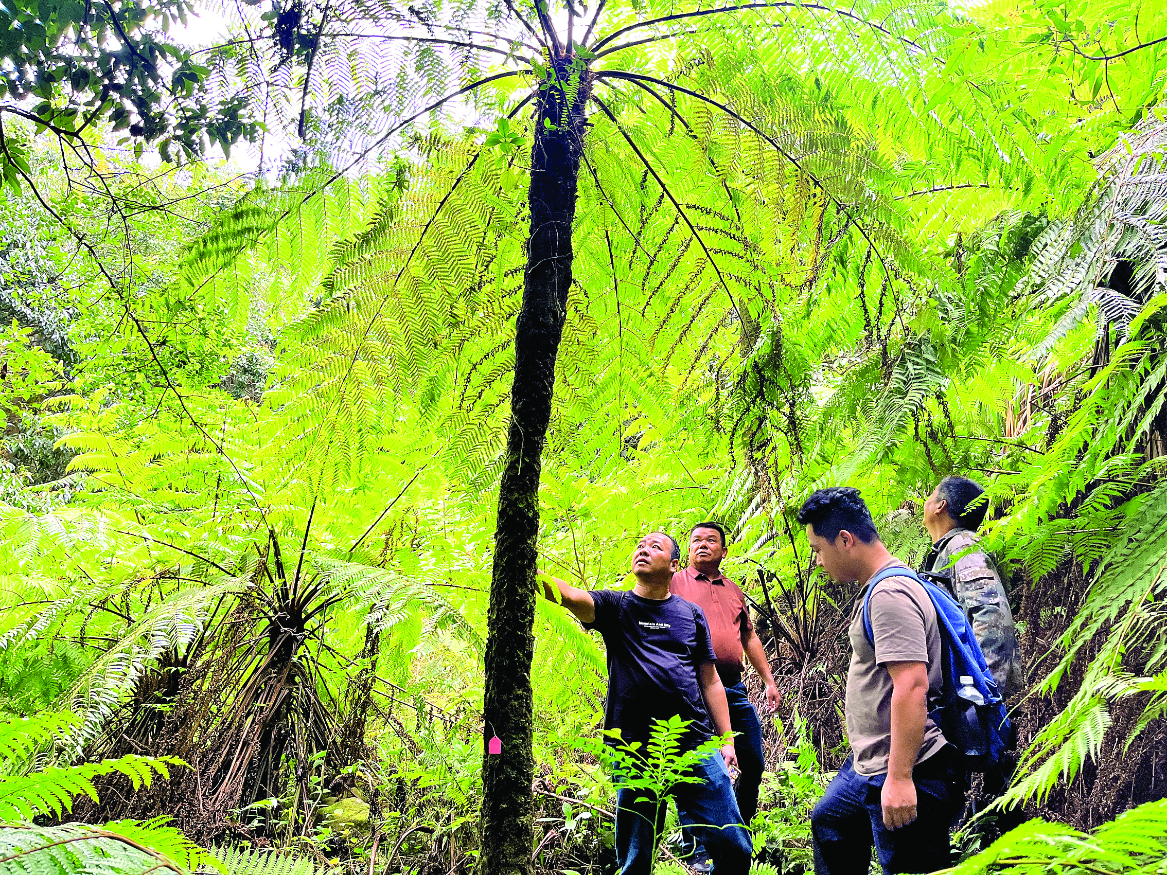 保護區(qū)工作人員測定發(fā)現(xiàn)的黑桫欏。