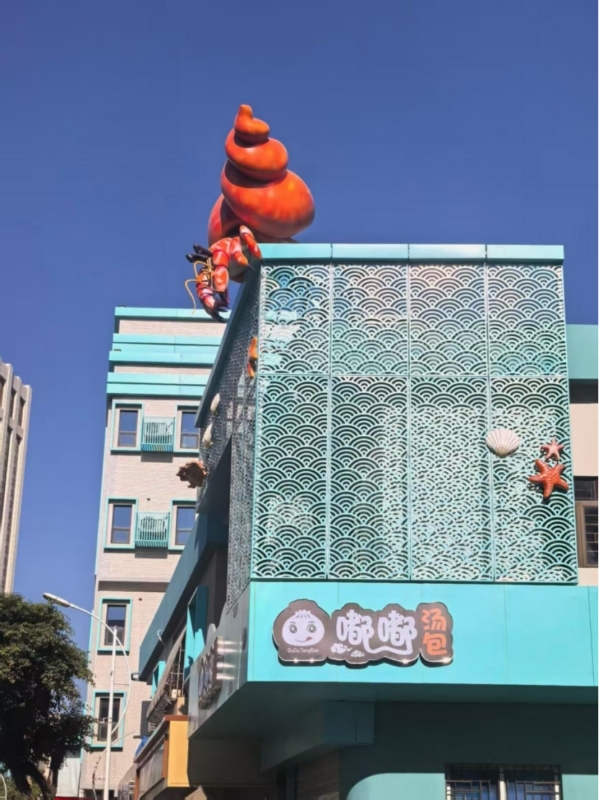 設(shè)計(jì)團(tuán)隊(duì)充分尊重商戶文化習(xí)俗與情感訴求,結(jié)合街區(qū)海洋主題定位,連夜調(diào)整設(shè)計(jì)方案。新方案中的寄居蟹采用卡通化造型,外殼融入海浪紋理與暖色調(diào)漸變,既保留了“聚財(cái)”的美好寓意,又與周邊建筑風(fēng)格相得益彰。經(jīng)過反復(fù)打磨優(yōu)化,最終的設(shè)計(jì)圖得到了陳師傅等沿街商鋪業(yè)主和居民的一致認(rèn)可。路過的居民和游客紛紛駐足欣賞,不少人還專門為這只“網(wǎng)紅寄居蟹”拍照打卡,為小店帶來更多人氣。